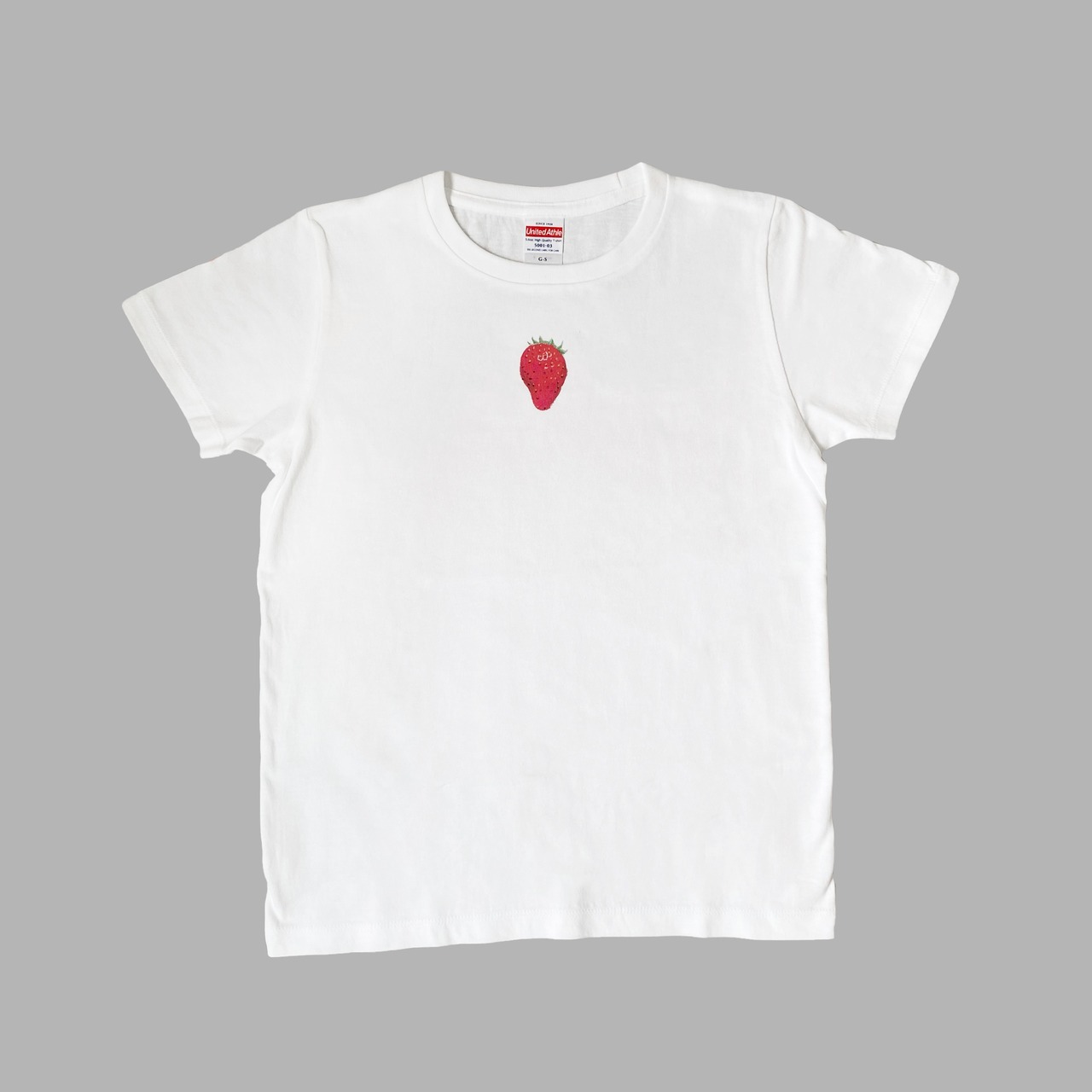 ちょこんとプリントされた一粒のいちごがかわいいTシャツ