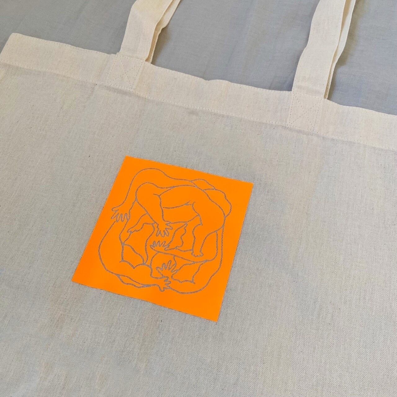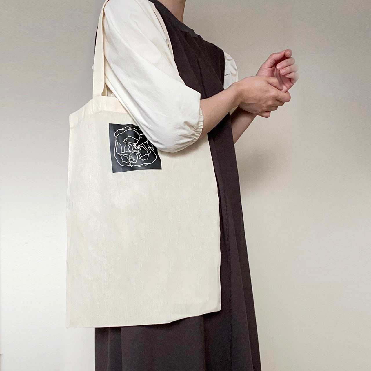 むちむちとした質感の絵が特徴的なmimikoのドローイングがプリントされたトートバッグ