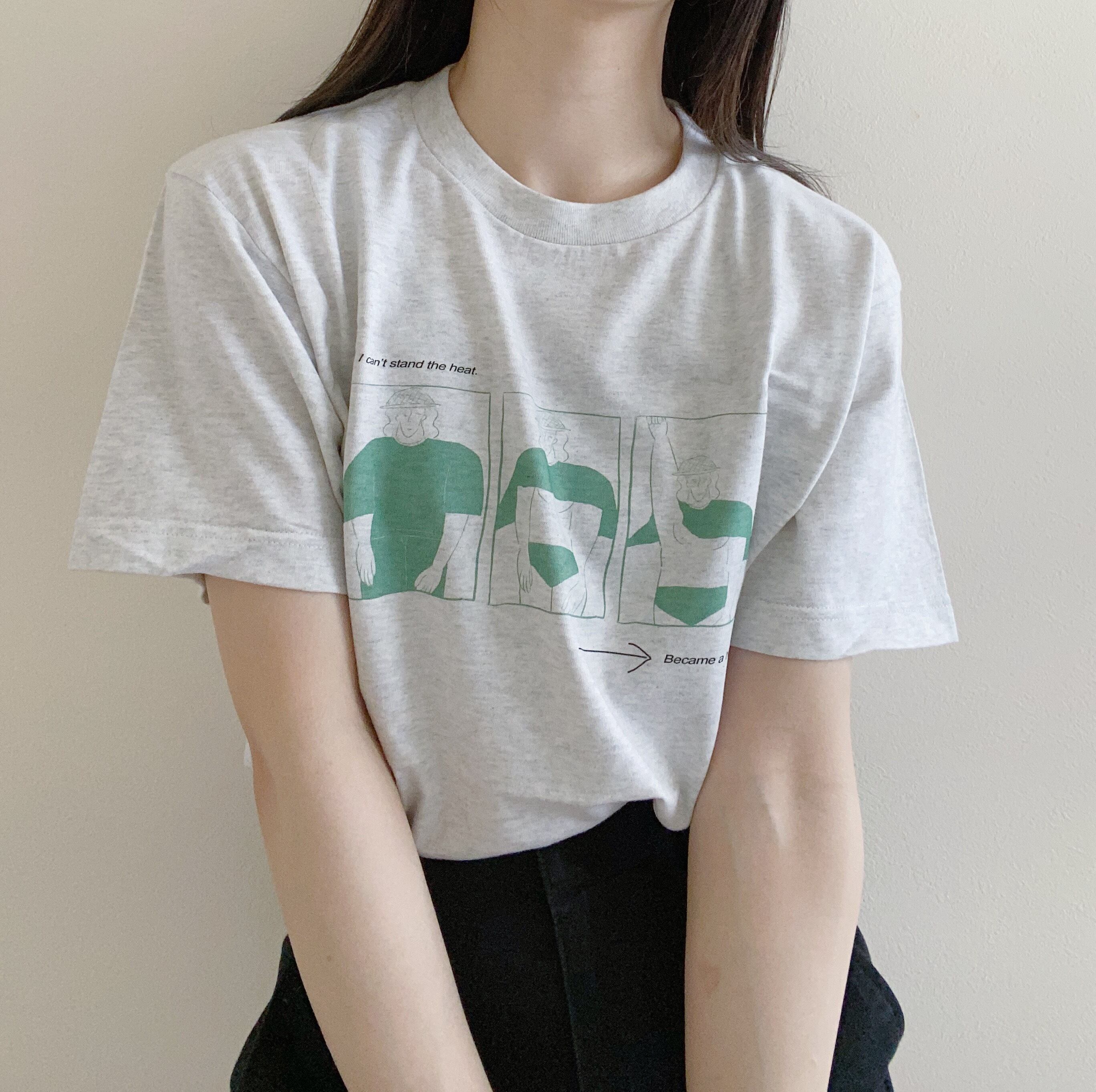 暑がりでヒーローみたいになっちゃった女の子が描かれたTシャツ